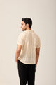 An elegant crochet shirt in beige, offering a chic and airy look. Perfect for resort holidays, summer outings, and evening strolls. |