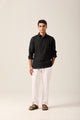 Crafted from fine linen, this black shirt is a wardrobe essential with a sharp look, perfect for business or evening occasions. |