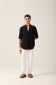 A stylish mandarin collar shirt in linen blend with a modern silhouette. Ideal for casual and semi-formal gatherings. |