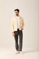 A lightweight cream jacket with woven texture, ideal for layering in spring or fall. |