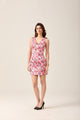 A vibrant mini dress featuring a geometric print with a flattering V-neckline and bodycon fit, ideal for parties or casual evenings. |