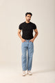 Loose fit, high rise, full length, straight hem, vintage wash |